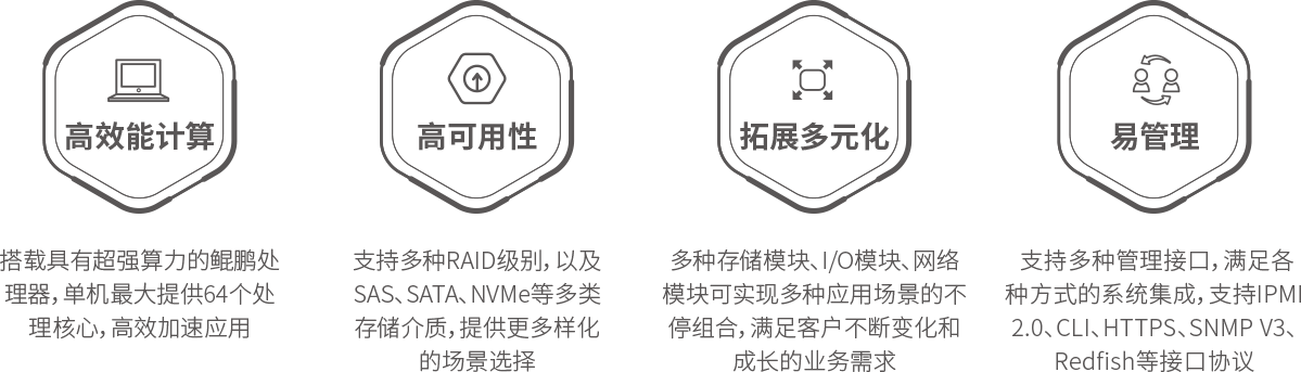 mile米乐集团 KunTai R522通用服务器是神州数码基于鲲鹏基础硬件推出的新一代数据中心服务器。其具备高效能计算、多元扩展、高稳定性与绿色节能等特性。